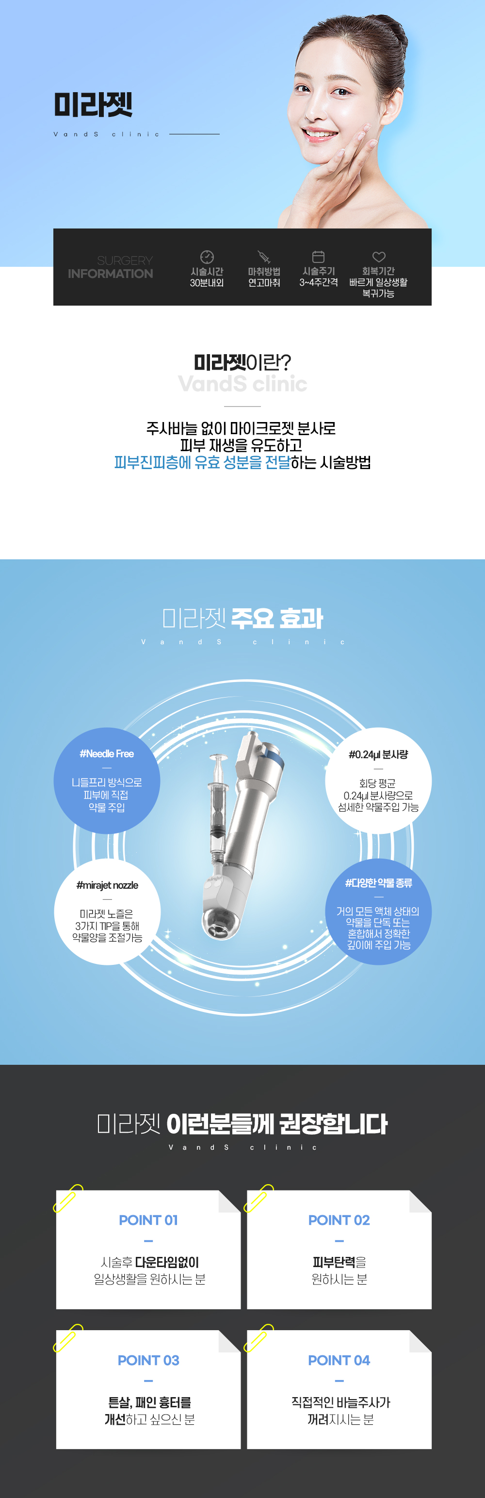 적은 통증으로 흉터, 튼살 등을 개선하고 싶으신 분 바늘 없는 스킨부스터로 색소, 모공 피부결 등을 개선하고 싶으신 분 울퉁불퉁한 피부결을 매끈하게 만들고 싶으신 분 노화된 피부를 탄력있게 개선하고 싶으신 분
